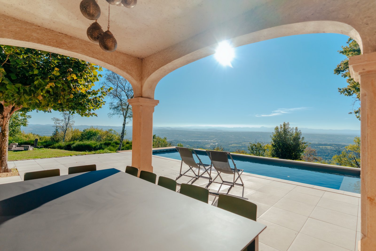 Villa d'exception de 300m² offrant une vue panoramique à 180° sur la chaîne des Puys et les volcans d'Auvergne, patrimoine mondial de l'UNESCO. Un mas provençal authentique, cas unique en Auvergne, niché au cœur d'un domaine de 8 hectares.
